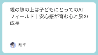 育児親の膝の上は子どもにとってのATフィールド|安心感が育む心と脳の成長 親の膝の上は、子どもにとって安心できる“ATフィールド”のような場所。親子のふれあいが子どもの心と脳の発達にどう影響するのかを、日常のエピソードを交えて紹介します。 2025.10.12育児